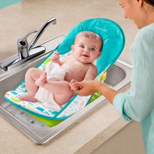 - Ergonomic and secure environment for bath time and nap time