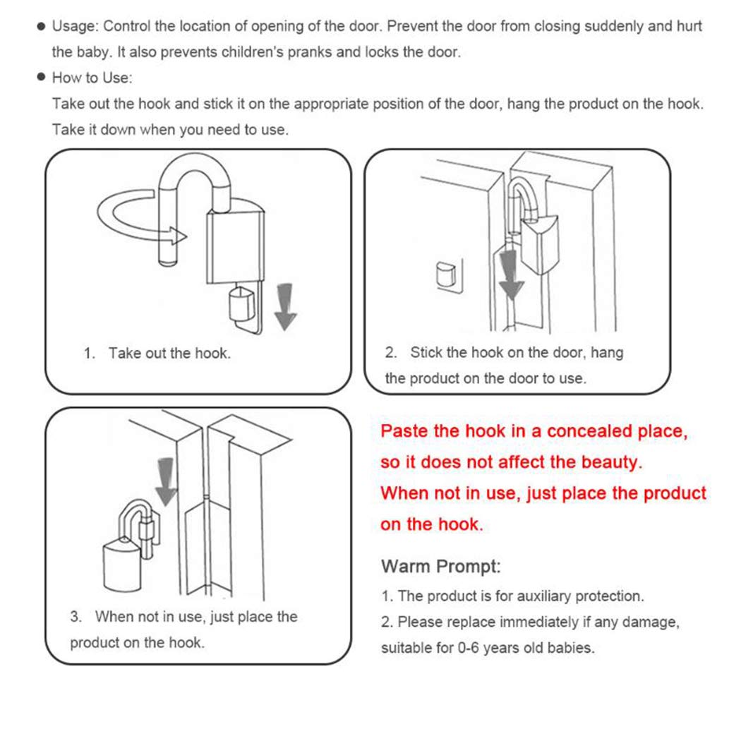 control door open position, to prevent the door suddenly closed, crush injury baby finger or baby will be locked in the house