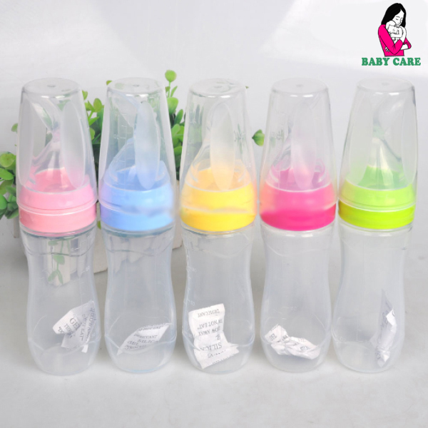 Let the baby gradually accustomed to using spoons and having other nutrients besides milk. Please gently press the bottle if you want to use.